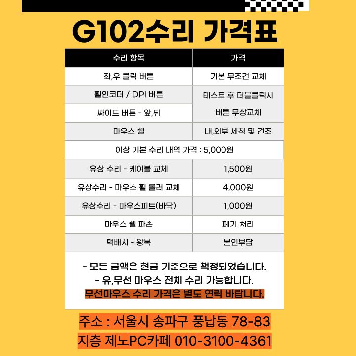 G102 마우스 기본 수리내역